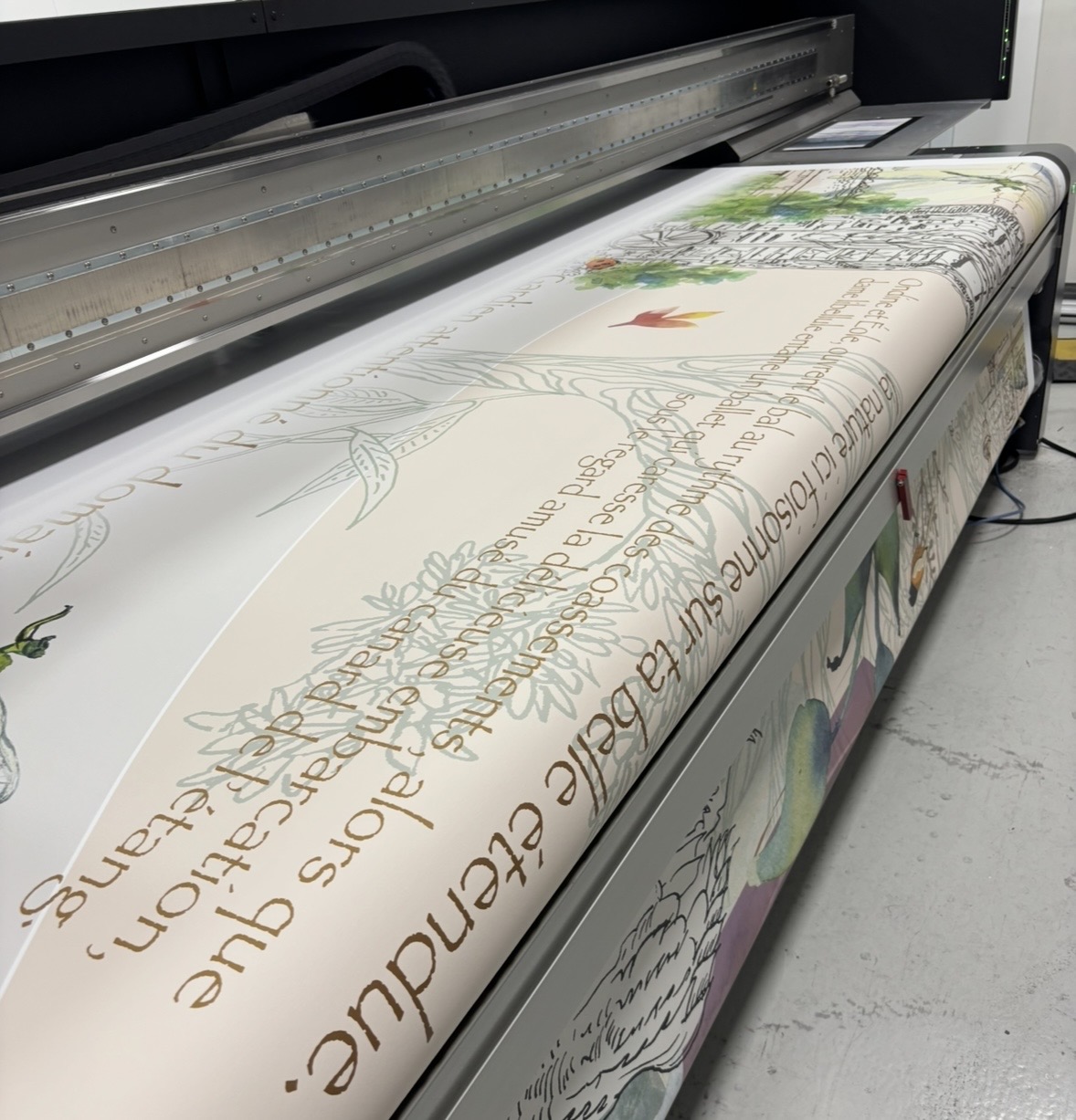 Avec nos partenaires de confiance (imprimeurs, poseurs, artisans…) qui partagent nos valeurs, nous donnons vie à tout type de supports créatifs, même les plus audacieux. Impression des créations sur les SUPPORTS CHOISIS : papiers peints, cadres muraux, sols, plafonds, meubles…) et dans les MATIÈRES en cohérence avec l’univers ainsi façonné : bois, dibonds, textiles, papiers…